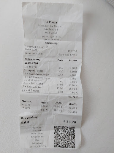 The worst customer service we have ever experienced! A waiter who served us had an attitude and was a liar, too! Me, my husband and a friend had 3 drinks, a pizza and salad. The pizza and salad were very nice. When it was time to pay a bill, a waiter charged us £1.90 extra for an empty plate , which is ridiculous, and we were not told about it. Also, he tried to charge us extra £8.40 (! )for 2 drinks ( a beer and mineral water!) that we did not have! Just as well that we checked the bill! Then the waiter played stupid when we confronted him about it, he turned arrogant and said that another waiter put it through by mistake and it was ment to be for another table! He did give us money back without an apology and tried to make us feel stupid. But the thing was that this waiter did not overcharged just us, he overcharged 2 other tables before we had our bill! We watched other people questioning the same waiter about their bills and asking for new bills! It looks like it has been happening all a while! We would not go back there again for sure! Not when waiters have an agenda like this! It is dishonest and disgusting!..It is a shame, because the food was nice!..There are plenty of nice restaurants in Villach with friendly, professional and honest staff!..Check your bills before you leave the restaurant, if...
