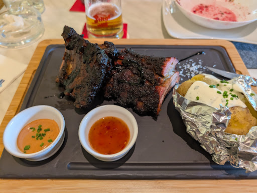 Ich hatte ein Pfeffersteak um 37€ mit Speckfisolen und Pommes. Nix gegen Pommes, aber für den Preis dann bitte selbstgemacht und mit ordentlichem Dip. Steak war schon gut, aber eben nix besonders. Von einer Pfeffersauce hatte ich auch mehr erwartet, die war unterer Durchschnitt. Neben dem Pfeffersteak gibt es auch noch ein Steak um 34€, basic. Alle anderen jenseits der 40€ Marke. Um den Preis erwarte ich mir wirklich mehr! Nicht mengenmäßig, aber eben mehr Pfiff und Einfallsreichtum. Da ist noch deutlich Luft nach oben.