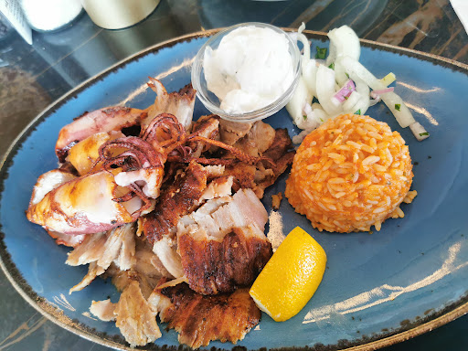 Read moreAmazing gem of a restaurant in such an unexpected location! The whole staff is Greek and the food rivals the food I've ever had in Greece. We were a party of 9 (including 4 kids) and the service was flawless, friendly and accommodating, we got all our dishes quickly and everything was great. I had the fish and seafood platter and honestly, one of the best grilled calamaris I have ever had. We tried a bunch of dishes between us and everything was outstanding. The restaurant is beautifully decorated and really big, lots of tables, and still runs like a small family place. Lots of little touches like a glossary of useful Greek words on the napkins, or shots of ouzo for the adults and watermelon juice for the kids made the whole experience memorable. 100% recommended, and hope to...