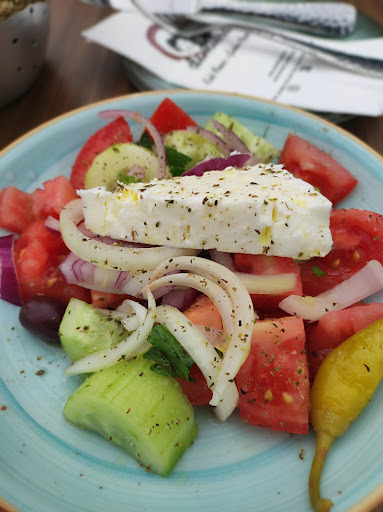 Als Vorspeise hatte ich den Feta in Blätterteig mit Honig und Sesam. Dazu gab es eine Garnierung bestehend aus einer Scheibe Tomate einer Scheibe Gurke und einem Salatblatt. Diese Garnierung war auch auf jedem anderen Teller vorhanden. Sehr einfalls-und lieblos. Die Vorspeise sah für mich nach Tiefkühlprodukt aus und schmeckte auch dementsprechend. Ebenso das Pitabrot welches mit Knoblauchöl bestrichen wurde. Als Hauptspeise hatte ich den Paros Teller mit Gyros, Calamari, Salat, Tzaziki und Tomatenreis, Das Gyros war leider extrem trocken und die Calamari waren ebenso ein Witz. Drei Stück in der Größe eines kleinen Fingers waren dabei. Der Tomatenreis war ungesalzen und das Tzaziki schmeckte nach sehr wenig. Und die oben angesprochene Garnierung durfte auch nicht fehlen. Der gemischte Salat waren ein paar Salatblätter mit geraspelten Karotten und schwimmte in einem komisch schmeckenden Senfdressing. Keine Oliven oder Gurken im Salat auch kein Olivenöl oder Salz. Wieder alles sehr lieblos Auch die anderen Bestellungen waren ebenso geschmacklos und lieblos. Das Highlight war aber der Kinderteller (Putenwiener mit Pommes). Unser kleiner bekam das Essen als letzter - was nicht weiter schlimm war - jedoch war das Putenschnitzel innen komplett roh. Das zweite Putenschnitzel war dann zwar durch, wurde aber von den Mitarbeiten bereits zur Kontrolle angeschnitten. Ebenso ein No-Go. Und das Putenschnitzel war ebenso aus der Tiefkühltruhe.