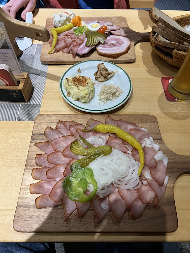 Wir waren letzte Woche in Lipno/Tschechien im Urlaub, als wir bei der Suche nach Besonderheiten auf dieses Jausenstübla gestoßen sind. Mein Mann, Liebhaber der deftigen Kost, hat sich riesig gefreut. Wir sind mit dem Auto,mit 4 1/2 Personen, ca. 30 Minute ,bis zum Stübla gefahren. Es ist eine gemütliche Jause mit der Möglichkeit drinnen oder draußen auf der Terrasse zu essen. Die Bedienung war sehr freundlich und unterhaltsam, so konnten wir eine Auswahl an Gerichten und Getränken auswählen. Auf dem Bild könnt ihr eine Speise für 2 Personen sehen. Diese bietet eine Vielfältigkeit und ist auch zu 2. kaum zu schaffen. Das Brot, welches dazu gereicht wird ist vom Geschmack her ein Träumchen. ...also alles Großen und Ganz absolut eine Empfehlung für die Liebhaber des...