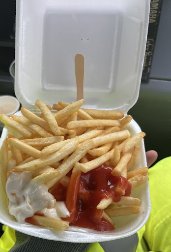 Ich habe erst online geschaut was Pommes kosten, Nichts gefunden, Ach ja, was werden Pommes wohl kosten, nicht mehr als 3,50 oder 4€ wobei des schon teuer ist! Vor Ort die Überraschung wo man nicht mehr nein sagen kann weil Pommes schon fertig auf den Tresen...
