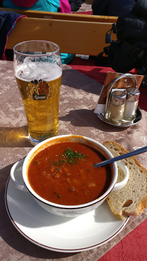 Read moreWe hebben iets van 8 almhuttes bezocht tijdens onze skivakantie en deze sprong er voor mij echt uit. Hele grote tent en mooie, overzichtelijke self service binnen. Daarnaast loopt ook nog bediening rond voor het opnemen van een extra drankje als je dat wilt. Knusse hoge tafels en een groot binnengedeelte wat in mum van tijd ‘buiten’ kan worden gemaakt door een dak wat wegrolt. Perfect als de zon het toelaat, zoals bij ons het geval was halverwege onze lunch. Echt een onverwachte bonus. Grootste pluspunt voor mij was de muziek, echt heerlijke tunes, bijna ibiza-achtig. Ik vind de vrolijke Oostenrijkse muziek ook prima, zoals bij de meeste tenten, maar dit was wel een erg fijne afwisseling. Eten was gewoon in orde en gemiddeld, maar de entourage maakt hier een hele dikke...