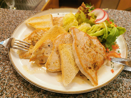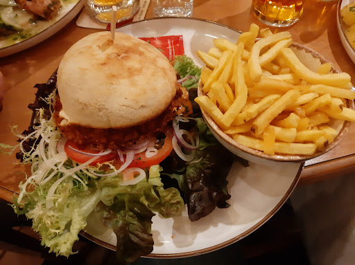 Nearby restaurants were all closed except for this one. Got seated, handed a menu, service was unusually good and they were very perceptive to find moments to help with everything, seems that in other reviews they were negative but that is perhaps to speaking english, we spoke german. I ordered the chicken burger which was 16.2 eur, nicely presented, tad bit pricier than nearby restaurants, only issue is due to the salad size, you either have to cut and eat it or remove the lettuce first before even thinking of fitting it in your maw. Otherwise tasted very well and the fried were quite toasty which is nice. The drinks were fine but again, a tad expensive (0.5l apple juice/6.8 eur, 1l mineral water/7.2 eur, 0.5l beer/5.6 eur) otherise, everything was quite nice...