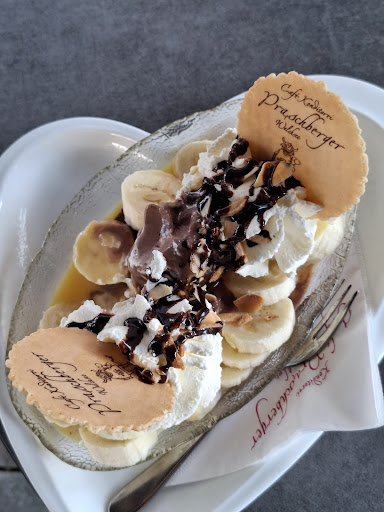 Read moreWir waren heute kurzentschlossen vor Ort. Wollten uns kurz etwas trinken. Wetter und tagesbedingt ein großer Andrang. Drinnen fanden wir ein freies Plätzchen. Leider wurden wir von einer Bedienung vollkommen ignoriert. Noch nicht einmal ein Nicken, das man uns registriert hat, war möglich. Jeder hat wohl mal einen schlechten Tag. Hoffe ich zumindest für die nächsten Gäste. Rundum wurde bedient, abgeräumt und kassiert. Nach einer Viertelstunde bediente uns eine leicht gebückt gehende Dame. Sie war sehr freundlich,Flink und flott unterwegs. Vielen Dank Ihnen. Der Eiskaffee und und die Eisschokolade sind sehr...