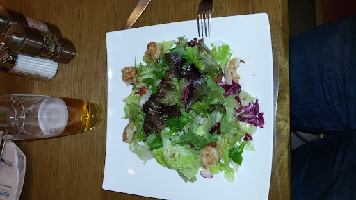 Read moreDas Essen kam recht flott, meine Pizza war auch ganz gut. Die Calzone meiner Frau war eher mau, vor allem weil in der Pizza ziemlich grobe Salami-Würfel drinnen waren - das erwartet man eigentlich in einer Pizza nicht wirklich. Der steirische Teller, mit dem Kürbiskern-panierten Fisch-Stücken und dem Salat, war praktisch nicht gewürzt. Alle vier Erwachsenen hatten normale Getränke, für unsere 2 Kinder haben wir einen Krug Leitungswasser bestellt. Ich verstehe grundsätzlich, dass auch Leitungswasser Aufwand im Handling (Abwasch,...) verursacht, bin aber der Meinung, dass bei einer Gesamtrechnung von knapp €80,- eigentlich auf die €1,50 für das Leitungswasser verzichtet werden könnte. Hätten wir nur Kleinigkeiten oder gar nur Getränke konsumiert, hätte ich damit kein Problem gehabt... Da ich ein Stück meiner Pizza nicht wegessen konnte, hab ich darum gebeten es mir einzupacken. Der Kellner hat zuerst darauf vergessen mir das Stück wieder zu bringen - hat es mir aber danach wieder gebracht. Ganz ehrlich - ich möchte nicht wissen, wo das Stück Pizza in der Zwischenzeit war... Alles in allem war es ganz Ok, bei weitem aber nicht dem Preis des Essens gerecht... (die Pizzen haben beide über €10,- gekostet) Kann auch sein, dass wir einen schlechten Tag erwischt haben - dafür kann ich als Kunde aber...
