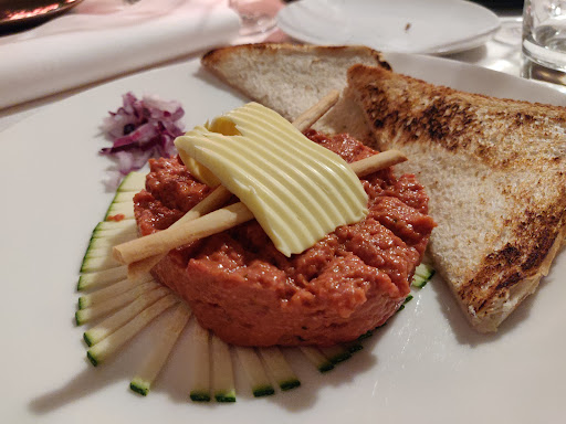 Read moreTisch war für 17.30 reserviert, als wir kamen waren wir die ersten. Bestellung wurde rasch aufgenommen und kurze Zeit später hatten wir auch schon die Vorspeise. Ebenso kurze Wartezeit zur Hauptspeise. Kellner sind sehr freundlich und bemüht einziges "manko" ein paar sind 5-6 mal am Tisch vorbeigelaufen,haben auf die leeren Teller geschaut und sie aber nicht abserviert. Stört mich persönlich nicht aber gibt ja Leute die sich desswegen gleich aufregen aber die Teller wurden ja trotzdem eigentlich in kürzester Zeit weggetragen. Nach dem Hauptgang hat es ein bisschen gedauert bis und wieder ein Kellner besucht hat, (war aber dann mittlerweile Stoßzeit und das Lokal gut besucht) weiß nicht wann er es hätte bis wir selbst nach der Desserkarte gefragt haben. Zu den Gerichten : Auch als nicht Fisch Esser fühlt man sich sehr wohl. Ein ausgezeichnetes Beef Tartare zur Vorspeise und ein gutes Schweinefilet mit Schinken und Käse gefüllt zur Hauptspeise - klasse.. Mein Mann war von den Fischgerichten begeistert. Desserts waren ebenfalls Spitze. Preis/Leistung auf jeden Fall...