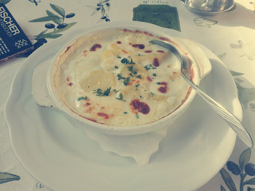 Das Gyros, überbacken mit Käse und Metaxa-Sauce, war ganz gut, aber das Verhältnis von Fleisch zu Beilage passte leider überhaupt nicht. Es ist eine regelrechte Fleischwatsche, bei dem die Beilage beim besten Willen nicht hilft.