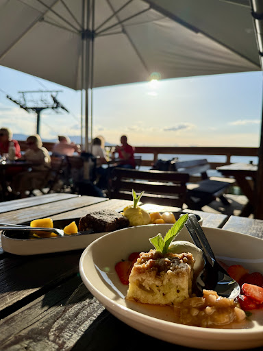 Read moreAussicht, Auswahl der Speisen, und Freundlichkeit des Personals sind top. Wir waren vier Erwachsene zwei Kinder (sechs und neun Jahre alt) und ein Baby. Insgesamt war der Service sehr freundlich, Reservierung hat problemlos geklappt, und auch für den Fall dass es regnet hatte das Personal mitgedacht und innen noch einen Tisch für uns reserviert. Wir hatten Kas-Pressknödel in der Suppe, Erwachsenen und Kinderburger, Den Salat mit Hendl und Kürbiskernen, und Wienerschnitzel für Erwachsene und eine Kinderportion.