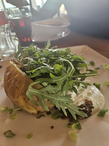 In terms of food everything was great and high quality. As a starter we got a potato that came with some white sauce and bacon, it was truly amazing, really recommend it. We also tried a soup and the snitchzel and it was all really tasty, also very recommended.