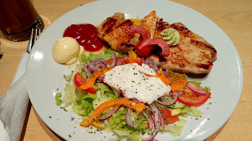 Food is wonderful – diner style. Don’t expects fancy plating, just tasty big portion grilled food. Pizza are flying out non-stop (about 10 Euro a pop). Dinner for two (Hausspieß and grillteller) comes to 45 Euro, really can’t do much better in other...