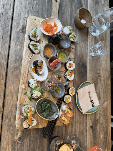 But the sushi is a catastrophe and quite expensive to top it off. Cleary prepared earlier in the day (tasted like when u take your sushi leftovers out of the fridge the day after) and then kept cool until serving. An absolut no go for sushi, should be prepared and then served instantly. Half of the plate was fried sushi, making the many hours in the fridge prior to serving even more absurd. Rice was without texture and the tuna in the glass servings we had to leave behind, did not taste fresh at all. Difficult to taste what you were actually eating, everything blended together, and no presentation on the card or from the staff.