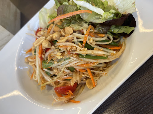 Love the raw papaya salad , it’s the best I have had ever. The staff is kind and really friendly happy Thai people . The Tom kha soup is nice too however lately their quality and taste both have gone down.