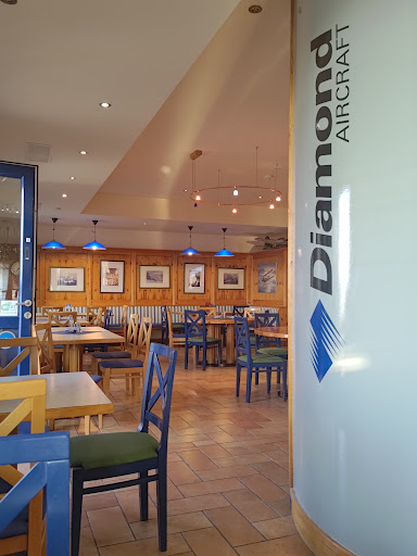 Read moreEin nettes Lokal mit super Blick auf den Flughafen und dem dortigen Geschehen, leider nicht unbedingt das sauberste.. Tisch pickt, Dekor Tuch dreckig.. das Essen war gut, aber "Eiergnockerl" um 6,irgendwas mit original fertigen Spätzle und Ei dazu.. das kann ich daheim auch.. die selbstgemachten mit Teig und allem sind um Welten besser.