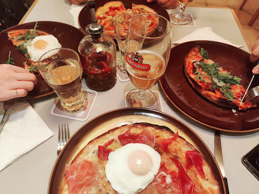 Fazit nach 6 Besuchen (4 besuche mit essen, 2 ohne) Wenn man zur richtigen Zeit hingeht und man einen gemütlichen Platz hat will man nicht so schnell weiter. 5 Sterne aufgrund Küche und freundlichem Personal. 1 Stern Abzug aufgrund Platzmangel, Ambiente und Wartezeiten bei Bedienung.