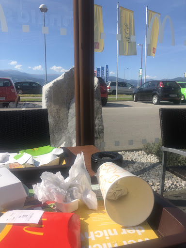 Read moreHeute am 01.05.2022 um 15:30 Uhr haben wir uns getraut, beim MC Donalds Wolfsberg auf einen Cafe mit Kuchen zu gehen und wollten den Nachmittag in Ruhe ausklingen lassen. Leider hatten wir das Pech , dass zuerst keiner uns beim MC-Cafe bedienen wollte, dann kam eine junge, dunkel haarige Angestellte Brillenträgerin und war sehr unfreundlich zu uns. Sie sah die ganze Zeit auf ihre Watch Uhr um Nachrichten zu lesen, warf mit dem Essen und diversen anderen Dingen durch die Gegend, machte ständig grantige Bemerkungen , die Kuchen Vitrine war so gut wie leer und das was es gab war gefroren. Zum Kaffee gab es zuerst kein Wasser, als ich dann nochmals hinging und höflich nach Wasser fragte, faucht sie mich an ich solle warten. WAS??? So ging es auch anderen Kunden mit dieser Angestellten. Das geht ja gar nicht. Gott sei danke gab es eine nette junge blonde Kollegin die mir höflich das Wasser gab. Wenn ich könnte würde ich gar keinen Stern geben und wäre ich Chef hätte sie die Fristlose bekommen. Wir sind noch nie irgendwo so unhöflich...