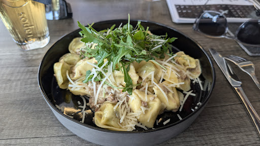 Read moreDie Fliegerei is a wonderfully creative, cool, calm, cosy environment. It give the sense of a relaxed yet open piano bar, respectable and quiet, but also it feels cosy and comfortable to be entirely in your own table, and yet the decor is so interesting and matches a perfectly quaint establishment. The food. Is. Exceptional. We had the Salmon and beetroot risotto, the beef cheeks and pork tips tagliatelle, paired with the house white wine, and finished with a Williams Schnapps apparative. Every part, was just wonderful, from the staff to the decor to the table to the wine to the service to the food. I promise you, go in to enjoy yourself and you'll leave happier than when you came...