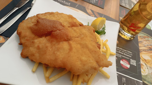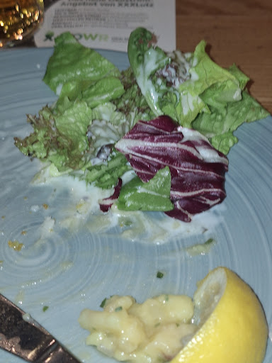 Ich bestellte mir den Fisch mit Kartoffelsalat.Das steht so auf der Karte.Dann kommt das Essen und es ist die Hälfte ein Salat mit Dressing dabei,was so nicht in der Karte steht.Ein Salatblat oder 2 als Garnitur ja,aber nicht so.Dann sollte man es in der Karte vermerken. Sola,das zweite Foto ist Eure Karte.Dort ist wirklich Salat darauf,aber als Garnitur so wie die Bedienung ja meinte.Bei mir ist Salat mit Dressing dabei,wie es nicht angegeben ist,und wie ich es nicht...