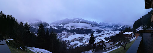 For German speakers, the only connection the Gasthof has to a Schulhaus is the fact that it is on property on which a schoolhouse was located in the old days. I wonder how the kids could have paid attention to the blackboard with the great views over the valley!||The Gasthaus is located on the steep slope of the Zellberg above Zell a.d. Ziller and consists of a group of guest buildings in the Tyrolean style, the focal point being the new Gasthaus itself with some rooms and a large terrace affording fantastic views over the Ziller Valley and into the mountain ranges to the East and South. Everything is spotless and stylish Tyrolean with lots of wood.||||The breakfast, which is included in the price for the room, consists of cold cuts, cheeses, egg, breads and a small buffet of juices, yoghourt, jams and cereals. Since the place is run as a real Gasthof (Inn), you can also order lunch and dinner. The chef knows what he is doing and the portion are such that you feel you should walk, rather than drive up the steep road next time you go to town below. There is also a good selection of Austrian wines and spirits.||The hosts, Christian and Barbara, are very welcoming and pay attention to detail, but this being also a holiday apartment rental place, don't expect your bed to be made daily. ||||I am coming back to location: The Gasthaus gives you a good feeling of being 'in the mountains' for a rest from your travels. If you plan to do a lot in Zell and in the valley, remember that you may likely want to drive rather than negotiate the steep footpath. You may also want to know they do not accept credit cards, so carry enough cash to avoid a trip to the valley...