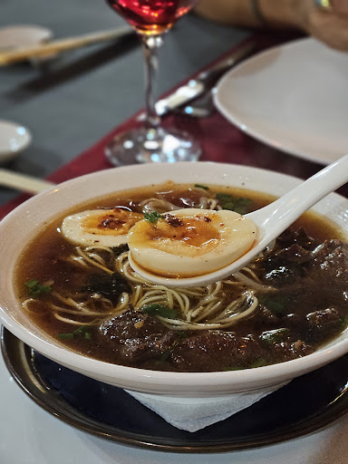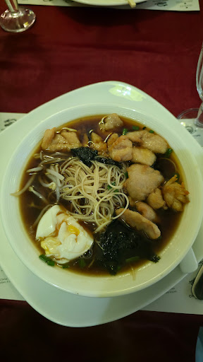 В ресторане кроме нас 2-х, было ещё 5 человек(ресторан был пустой). Дали нам меню и сразу подошла девушка за заказом, мы даже не успели ознакомиться со всем меню. Выбрали что будем заказывать, долго ждали пока к нам подойдут, решили позвать сами. Заказали куринный рамен, том ям, китайские пельмени с морепродуктами и чай с жаренным ананасом (в меню был большой выбор сладкого, но было только 3 вида в наличии) что меня очень огорчило. Атмосфера приятная, тихая музыка играла на фоне и было комфортно общаться. Приборы были грязные и скатерть с пятнами... Сначала принесли рамен мне, а муж смотрел на меня. Потом принесли ему том ям(считаю это не правильно, если 2 человека заказывают 2 супа, должны принести одновременно). Куринный рамен вкусный(яйцо получилось не красивое), я съела всё(порция сытная)😋. Пельмени с морепродуктами(морепродкты в виде фарша) не понравились, были без вкуса(соль, перец или какие - либо специи отсутствовали совсем, даже не спас соус, который принесли рядом). Жаренный ананас ждали очень долго(примерно 20минут). Наконец принесли, забыли приборы, никто не подошёл (взяли приборы с соседнего стола). На вкус не очень, сладости совсем не было, хоть и сверху был полит на вид шоколадом (вкус 0). Итого: атмосфера - приятная; обслуживание - не очень; еда - супы вкусные, второе и десерт ноль.