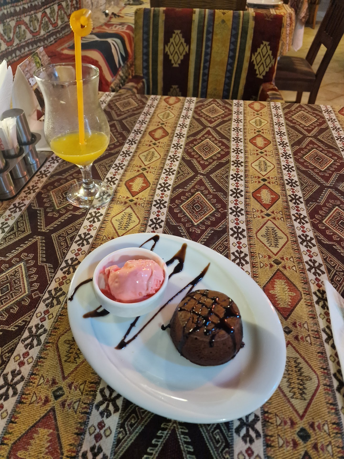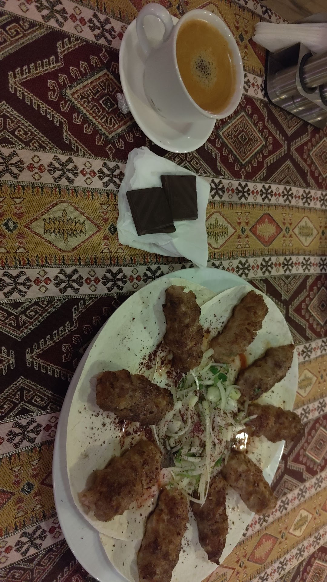Read moreI ordered sac , some parts of my meat was not chewable, my husbands and daughters food was ok. we wanted to order 1 lt compote(5 manat) , the waiter told us they have fresh juice 1 lt(15 manat) and it's very tasty so we believed and ordered and then he served compote, I told him that what he served is not fresh juice ,it is compote and he did not accept although he described me content of what he served is mineral water and syrup which means he knows it was not fresh juice , I did not want to argue in front of my daughter so we asked Bill ( 10 percent extra amount was added) we visited 3 more restaurants in our trip all high rated and none of them added this .I won't go again ever.