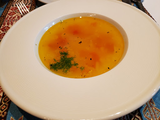 What a nice place. Modern interior with lovely art and traditional elements. Amazing service - the waiter's English fluency is definitely better than mine and the service is so attentive and at the same time discreet. Food: Next wow. Everything tasted so good. Our starters humus and ezme, the freshly made hot buns, the perfectly seasoned mushroom cream soup and the pomegranate lamb govurma were a real treat. Especially the lamb meat was great - not overcooked, not raw, not tough as leather, not oversalted, no - just the way how perfectly cooked meat should taste like. Even Guga would approve. Man, how did I miss properly seasoned meat cooked on point in this city. I really hope this aha-experience is not a nine-day wonder and they'll keep their standards. Will definitely try again. Only minus points are relatively high alcohol prices (local wine about 35-40 AZN/btl., international wines about double the price) and a 10 % service charge added to your bill. But food prices are absolutely fair - you'll pay 2x as much for far worse quality in the...