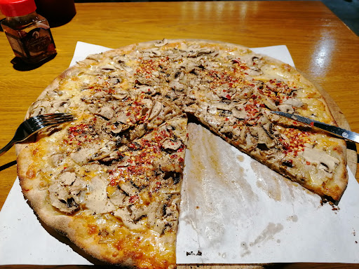 Superb thin crust pizza. İ ordered a large mushroom pizza. İ was impressed by the overwhelming amount of mushrooms on the pizza. Mushrooms were fresh. Pizza came with an adequate amount of cheese. Pizza did not have pilate (tomato) sauce, which İ am a fan of. Notwitstanding, the pizza tasted fine. Still a decent value for money priced now at 17, rather 16.5 manat, but with a 5% service fee, so the total is now 17.85 manat. Instructing him to keep the change, I gave the waiter an even 20 manat - he deserved it. A "large" pizza had been veritably large at this venue, but, since my previous visit about six month's ago, the "large" pizza is now smaller and is better characterized as a medium-size pizza. (The so-called "large" pizza currently on offer is too small to fill a man's stomach for supper although it would be enough for the average woman or two preteen kids.) For this "shrinkflation," I have downgraded the rating of this establishment by one star since my previous visit. I would recommend a man to order two "large" pizzas here or go down Xaqani to the shawarma shop and get two large meat shawarma with lavash for 7.5 manat each - that is what I did!) Dining area, while not small, is of modest size with an informal atmosphere prevailing. An unpretentious place. Good service with multilingual wait-staff. Since I like my pizzas spicier, I brought my own crushed chili flakes (dry) with me; you will not find that condiment on offer at this venue (although there is black pepper and liquids of various...