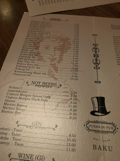 Read morePushkin Pub in Baku is a fantastic spot with a cozy atmosphere, great service, and delicious food at reasonable prices. Their snacks are must-try, and the live music adds to the vibrant charm to your weekends. With a friendly crowd and a smoke-free environment, it’s the perfect place to relax and enjoy a great night out!