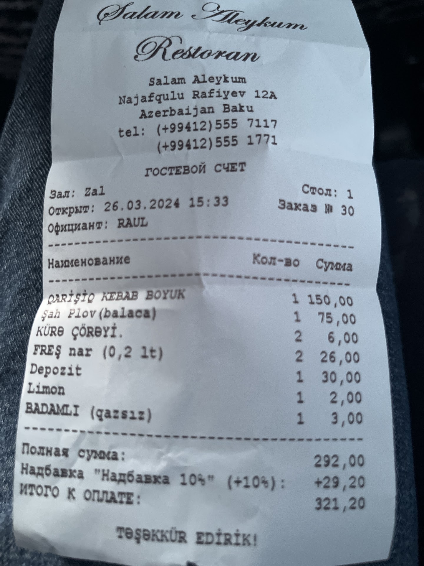 Our visit to Salam Aleykum Restaurant in Baku left a lasting impression, as we were immediately struck by its grandeur and the captivating beauty of its interior design. The restaurant boasts an expansive size, creating an atmosphere of opulence and sophistication that sets the stage for a remarkable dining experience. However, it is important to consider a couple of aspects before making your decision.