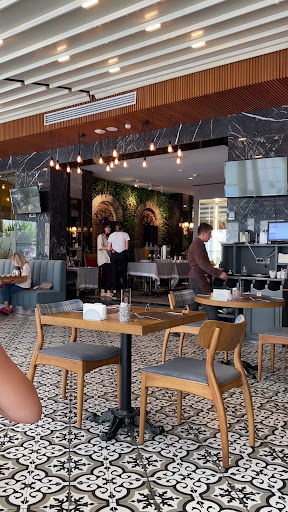 We went to the restaurant for breakfast. The place and atmosphere is cool. However we were 3 people and we found out breakfast for 2 people is too big and even 3 people can eat fully. So we decided to order for 2, but staff came to our table so many times and asked that we should order something else for 3rd person. It was ridiculous. Then we ordered additional food even though it was unnecessary. They brought the breakfast but didnāt bring main part of the breakfast. Eggs with tomato and eggs with sausage. After we become full we asked AFTER THAN THAT they brought the main part of the breakfast. Then we asked for payment, we saw they included the service fee (for what?) then when they brought the rest of the money after payment they didnāt give the whole money back. So I didnāt tip them either. Itās just sad to see this kind of people working like that and donāt know simple ethics. Probably we were not Arabs, thatās why they were rude to us....