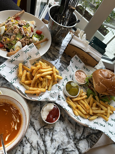 🍽️ Sifarişlərimiz: Mən tuna salat aldım 🥗, rəfiqələrim isə tomat supu, kartof fri və steyk burger sifariş etdilər. Yeməklərin dadı yaxşı idi, xüsusilə salatdakı ərzaqlar keyfiyyətli idi.