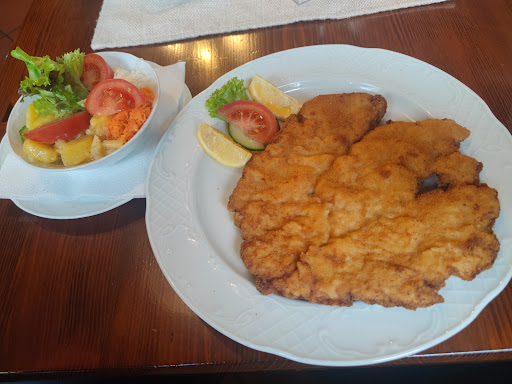 Gerade mit einem Kollegen die Schnitzel probiert. Einmal Schnitzel Wiener Art mit Pommes und einem mit kleinem Salat. Sehr leckeres Schnitzel, schön dünn und die Panade hat sich leicht abgehoben....👍👍👍 Sehr lecker. Auch die Pommes waren gut. Der kleine Salat war ok aber mit Luft nach oben.....