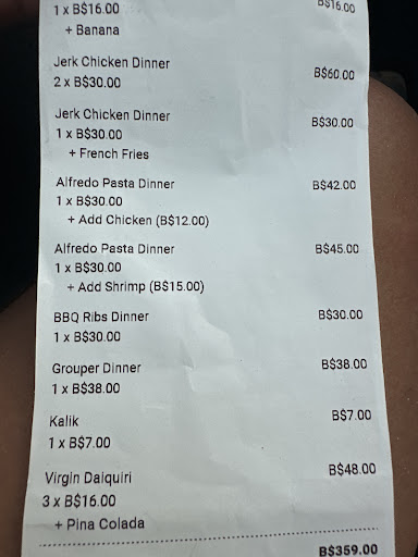 Food-wise, the grouper stole the showâperfectly cooked and packed with flavor. The BBQ and jerk chicken were generous portions; the jerk was a bit on the dry side, but still tasty. The ribs were solid, but the real surprise? The rice and peasâhands down the best we had anywhere on the island.