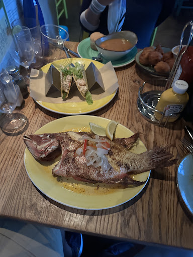 Read more3.5 stars-a reasonably tasty meal here, with the caveat that it is a poor value for the cost in my opinion. Extra half star for the staff (Tiffany) as they accommodated an issue with a dish without any difficulty. We never actually entered the building as we were able to sit at a patio table near the live band (a bit loud). The menu skews heavily towards Bahamian cuisine-fish, conch, jerk spice, fruits, etc. Not much exciting when it comes to side dishes. Of course, a full bar. We chose two drinks today, the Bahama Mama (rum punch $14) and an alcohol-free Tropical Delight ($9) which was a nice combo of fruit juices and ginger beer. I am a big fan of Conch Fritters ($14) so that was our beginning of the meal order. They came piping hot with a nice flavor profile, but the amount of conch seemed very small. Entrée choices today were the Junkanoo Salad ($20) and a Caesar Salad with Shrimp added ($16 + $12). The Caesar was as expected with the shrimp tasting fresh. The Junkanoo Salad is made up of fresh conch, bell peppers, tomatoes, pineapple, and mangoes combined with native citrus juices. The salad looked great-fresh and colorful. Unfortunately, it also includes something-either chopped jalapenos or spicing in the dressing-that made it inedible for me. I admit I am 100% wimp when it comes to this type of spicing but it is truly bad management that whatever caused this isn’t listed on the menu. I made this difficulty known to our server and she immediately asked if they could provide me with something different. Wanting to just get something quick and easy, I asked for a Caesar Salad, which came quickly and was pretty solid. But it was a bit of a surprise (maybe it shouldn’t have been) that I was charged for the dish I was unable to eat. I chose not to make it an issue at checkout because they were so accommodating regarding the change. While we felt sated after our meal, the prices including the 15% mandatory gratuity and the 10% VAT brought the meal cost to $106! Very difficult to justify with the simplicity...