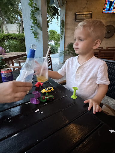 I asked for a water for myself at one point, I was getting a little warm from the heat on the patio and she got us some bottled waters and set up a giant fan near us to help cool me off. Such great customer service from her. Our food was great, my husband and I both went with Indian dishes but my toddler had shrimp and fries and like that! I had butter paneer and roti. The roti wasn’t our favorite thing ever but it was still good; however we get roti from different types of cuisine and each is different so Indian may be different than our typical Malaysian favorite! Prices are very reasonable for the island and it’s right next to a convenient store too, we got our toddler some ice cream there and some drinks to take back home and our waitress offered us a taxi back to the resort when I asked about finding one back. (Albeit $5 more than our taxi there but it was late) All in all we had a lovely evening on the patio having delicious dinner to send us off back tot he states!