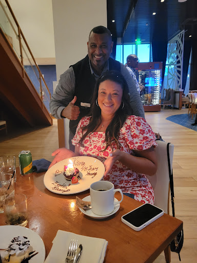 My partner and I both ordered the surf and turf midrare. Mine was cooked perfectly, but hers was medium well if not well. Our server never asked us if we enjoyed any of our food, and his colleague was more attentive and apologetic for the overcooked meal. They placed wine glasses on the table, which I informed Giles I would be ordering wine with my steak. He then proceeded to remove the wine menu, and I told him I wanted a glass of Cab with my dinner several times. He then waited until after I finished my dinner to check in. I told him the wine was supposed to go with dinner, so there was no point.