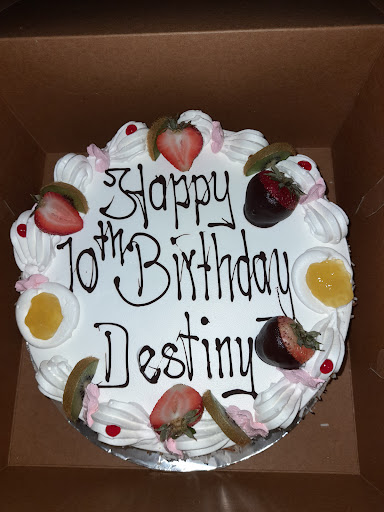 Read moreThe cake itself taste good ,but one slice of cake had a ton of filling was not too much cake just icing. I called prior requesting light on the filling because I remembered the last on was filled with heavy filling. They said okay ! we are here a plate of icing. The Birthday fella didn't enjoy his bday cake...
