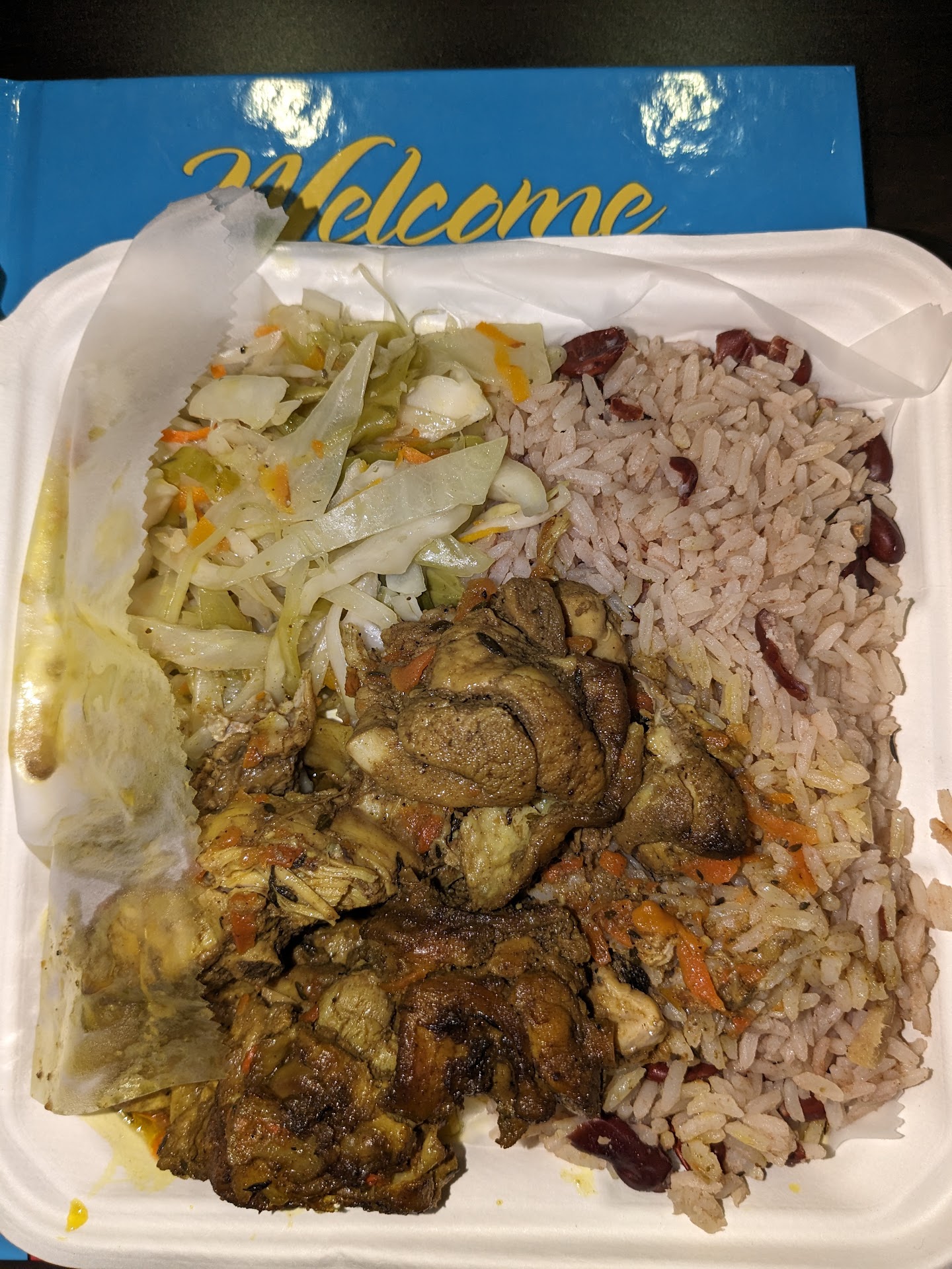 However as so many reviews before me noted juniors jerk pit saved the day . Amazing curried chicken with rice and peas and veggies, I took an easy way in tot Try the food but I will be back for the jerk chicken and...