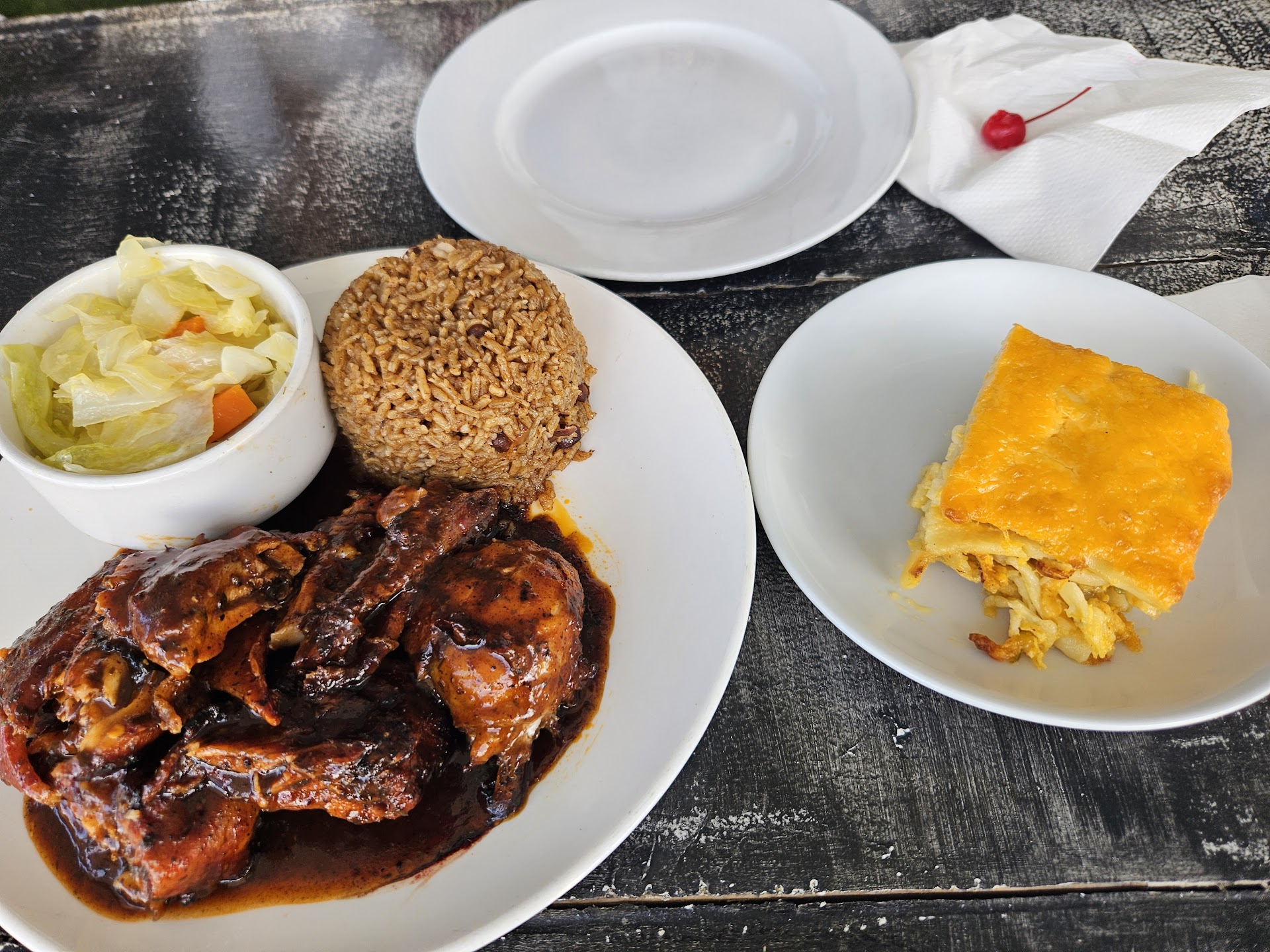 âââââ Offerings The spicy jammin' jerk chicken is nothing short of incredible. The flavors are bold and deep, with a perfect balance of smoky, spicy, and slightly sweet notes that make each bite unforgettable. The jerk seasoning is layered with heat, but it doesnât overpowerâit enhances. Cooked to juicy perfection, the chicken has a beautiful charred exterior that locks in all those amazing spices. Itâs served with traditional sides that complement the heat, making for a well-rounded, flavorful plate thatâs impossible to resist.