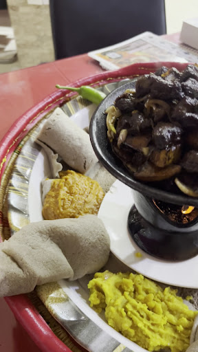 Read moreAmazing little place with delicious food and incredibly friendly staff. It’s a small family establishment with a lot of character. I ordered Beef tibs #15, Key tibs #14, and a large cooked vegetable and beans (lentils) platter called Beyeaynetu #19. Even though I go for the perfectly grilled meats (served piping hot over coals), this is also a great place for vegans/vegetarians with lots of cabbage, potatoes, lentils, etc. If you like it spicy be sure to order some berbere powder on the side to dip your meat in. Everything is served with authentic Ethiopian injera flatbread.