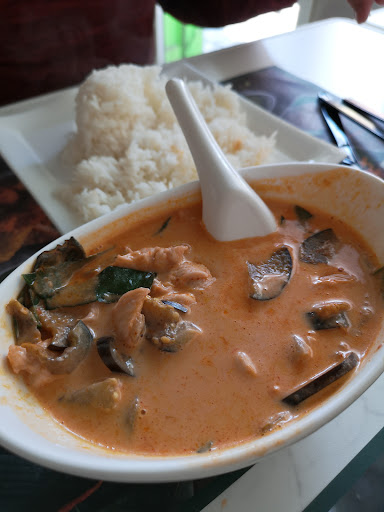 Staff were friendly. The restaurant is simple and clean but no background music so you just hear the conversation from the nearby tables. When the lady took our order she didn’t ask if we wanted spicy or not so I just assumed we’d get regular Thai spiciness (I love Thai food in particular for the kick you get from the spices and chili). Food: Papaya salad, generous serving, very fresh with lots of papaya but almost no fish sauce and zero chili. I’ve probably eaten over 200 papaya salads in my life and this was the only one with no chili whatsoever. Disappointing! Tom yum soup with crab and prawns - tasty, big serving Pad grapao (kaprow) - another of my go to dishes, again zero chili, when this is meant to be a spicy dish! I asked for chili and they gave me a small dish of chopped green chilis which helped the dish taste more like it usually would. Panang curry with beef - flavours were good but the beef was a little tough. Morning glory - good size serving, very good taste Garlic fried rice - tasty