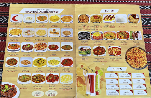 Read moreThis restaurant is a fantastic choice for authentic Bahraini cuisine. The breakfast offerings, including the flavorful egg and tomato dish, blaleet, and chicken liver, are particularly noteworthy. For dinner, the traditional grilled tikka and lamb chops are excellent choices. The restaurant's ambiance is charming, featuring antique decorations and old-world elements that evoke the spirit of ancient Bahrain. It's a delightful place to experience both delicious food and a unique...