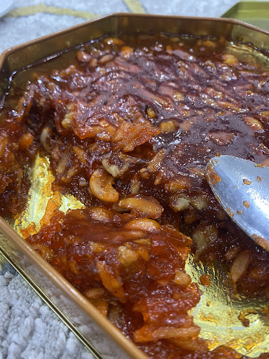 Good place, they provide many different types of sweets, but the best is Bahraini Halawa. You have to ask and taste the halwa given to make it’s new because I took one special sweet but it was old, unfortunately my father in law was upset about it, not a fresh halwa. The staff are so friendly and fast. I recommend it for you guys. If you visit Bahrain 🇧🇭 go to this shop. I hope they will reduce the prices because the prices are higher...