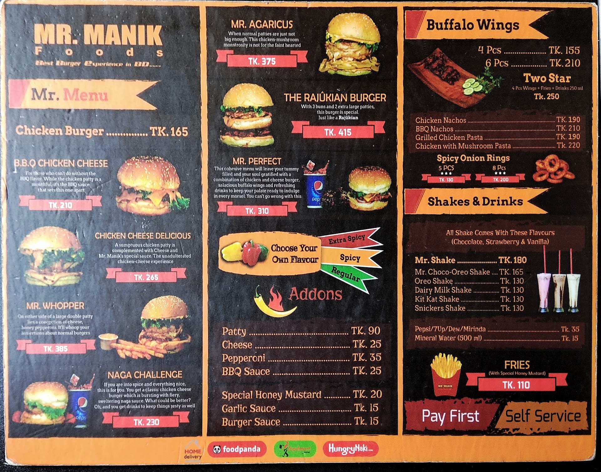 Read moreI have been eating foods and also taking parcel from Mr Manik for like 3 years. In these 3 years I didn't had any issues with the food quality or amount but today I was disappointed. Because today I ordered 2 BBQ chicken nachos which costs Tk 235 each, I can't check the amount of nachos while taking it from them so as usual I took it home and I found it disappointing that the amount of nachos wasn't the same like before as they changed the box. I hope they fix it.