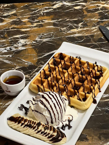 Waffle was the best item amongst what we ordered that night. It was served with a scope of vanilla ice cream, maple syrup and banana cut into pieces. Chocolate syrup was also spread on top of everything. The waffle itself was soft and sweet. It was very good.