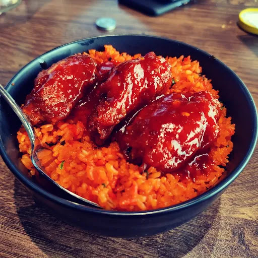 Mexican rice bowl bdt 100 😱 8/10 The rice again was nice and jhorjhora. Small pieces of chicken and good. The amount of rice was perfect that we felt so full!