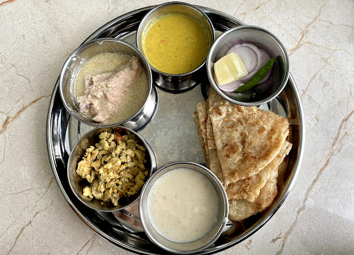 We ordered breakfast thali(the only option for breakfast here)... Chcken soup (as known in Star) Dim Jhuri, Ghono Dal, Shuji (though the guy kept on saying it's halwa) some onions oh one chillie. Well I was really disappointed with the taste - above all service. They provided us a glass with lipstick marks on it - can you believe that!!!!