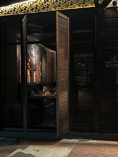 The décor boasts intricate details, from the delicate floral wall art to the cozy, colorful cushions arranged thoughtfully for a traditional yet modern seating experience. The bamboo accents and carefully curated display shelves, filled with artisanal pottery and ornate items, add a touch of sophistication that transports you straight to a serene Thai haven. Every corner feels thoughtfully designed, making it the perfect place to enjoy a meal in a relaxing, classy atmosphere.