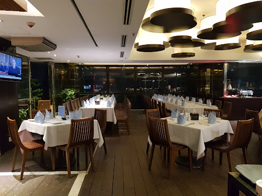 The scenery from the restaurant is awesome and you get to see the Indian, US and Canada embassies from the rooftop. The live grill is active. Live music is played every Thursday and Friday.