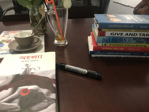 This is Bangladesh's first study cafe, or that's how they advertise it. I have never seen another one, so I guess it must be so. Was really looking forward to going their for a while, and finally had the opportunity to pay a visit. And it really met all of my expectations and beyond. Let me just point out some of the best parts about this cafe: The location is actually really easy. If you are walking and live in/near Niketan, just cross the road from police plaza and take the bridge of Hatirjeel. After crossing the bridge its only 5 minutes walk. The environment of the cafe is serene. Staffs are super nice. Free wifi. The silent/study zone is free too. Which is also amazing. The minimum order fee is 200BDT, if you want to use the silent zone. Which is a lot better than many cafes. Absolutely Pristine toilet. Really good quality coffee with beautiful coffee art. They also provide a small cookie with the coffee, which is a plus.